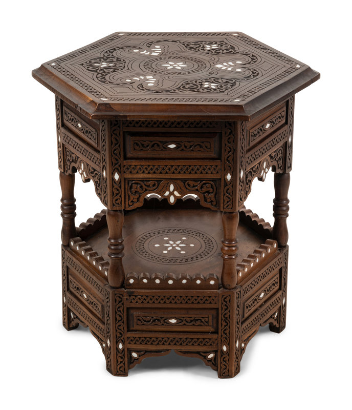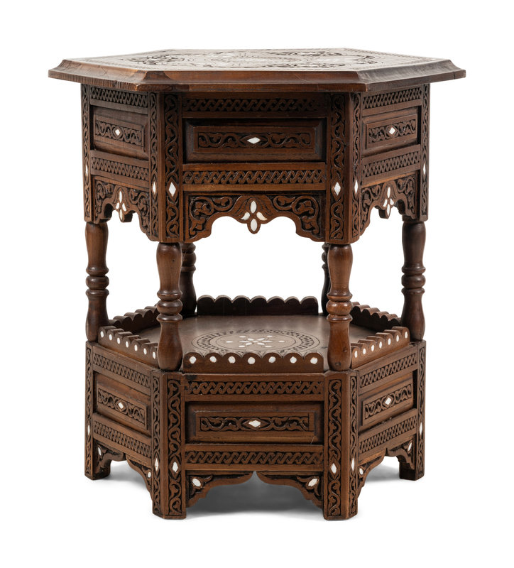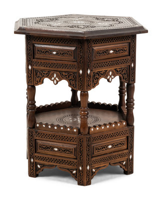 A Syrian Mother-of-Pearl Inlaid Walnut Side Table