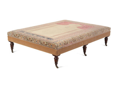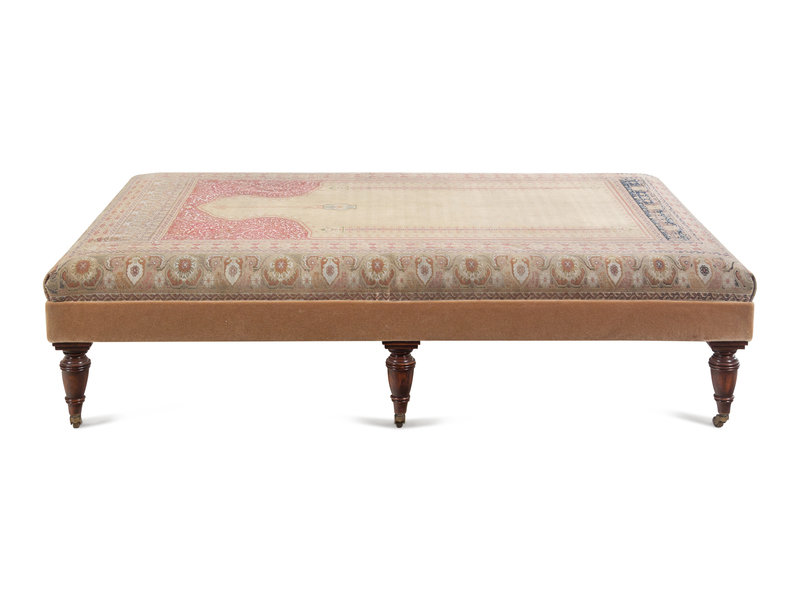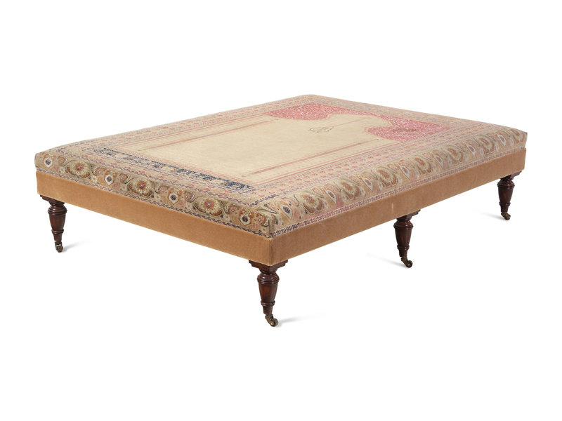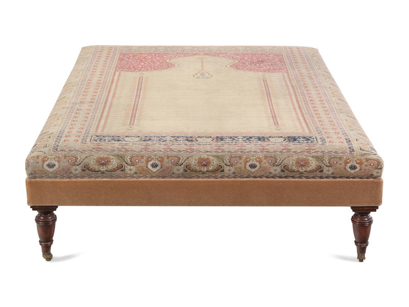A Large Contemporary Ottoman with Hereke Prayer Rug Upholstery