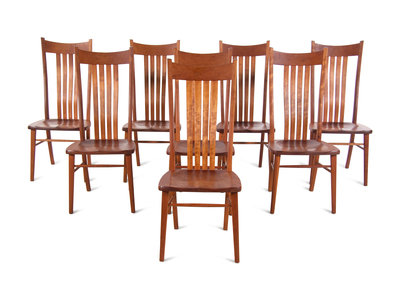 A Set of Eight Gary Weeks Studio Cherrywood Dining Chairs