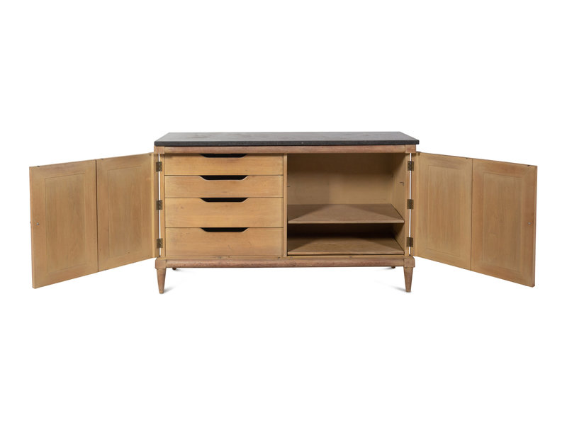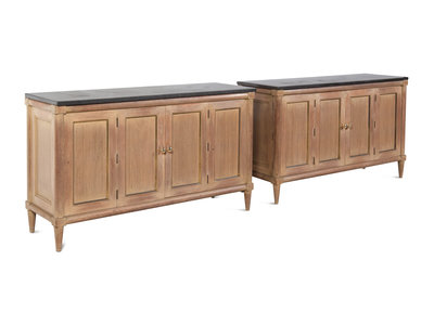 A Pair of Reed-Carved Marble-Top Console Cabinets in the Style of Maison Jansen