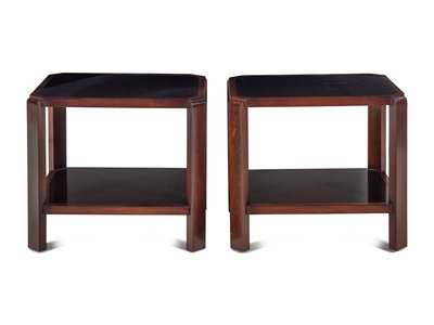 A Pair of Contemporary Walnut Side Tables