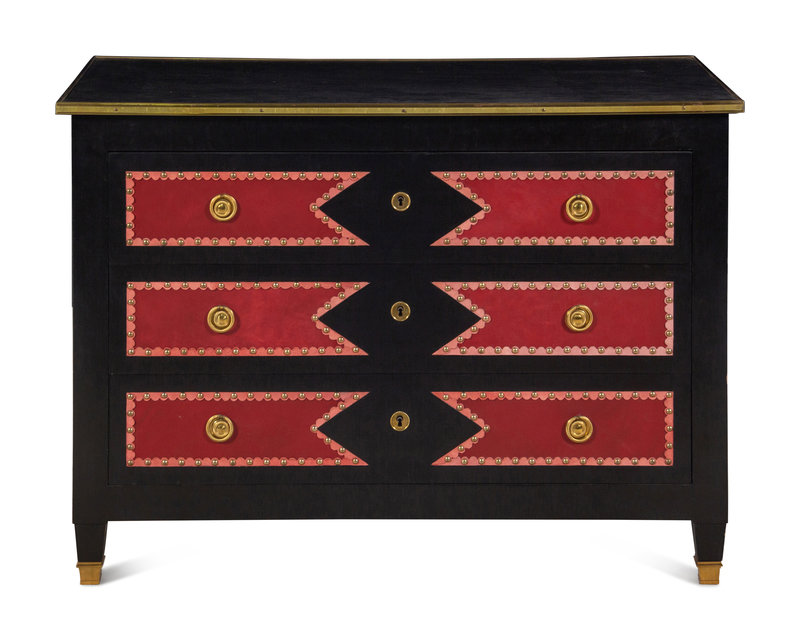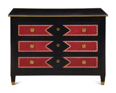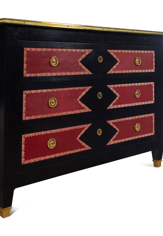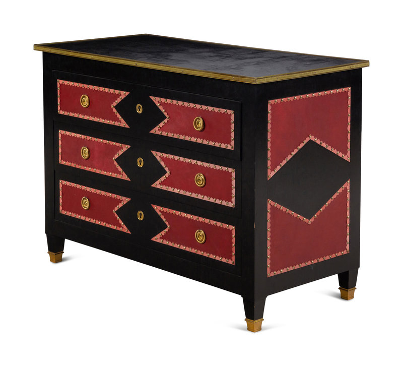 A Black Painted Red Leather-Inset Chest of Drawers