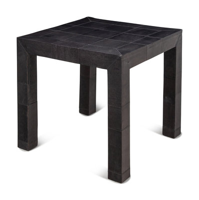 A Ginger Brown Black Faux Lizard Skin Side Table