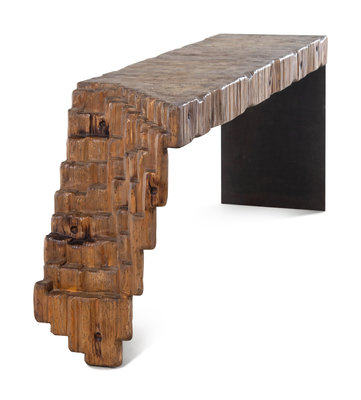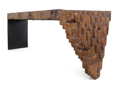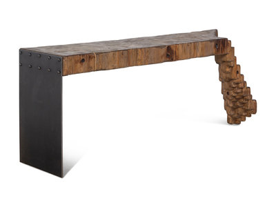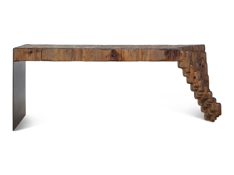 A Naturalistic Reclaimed Wood and Steel Console