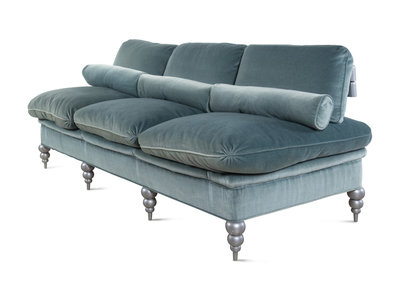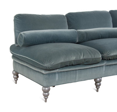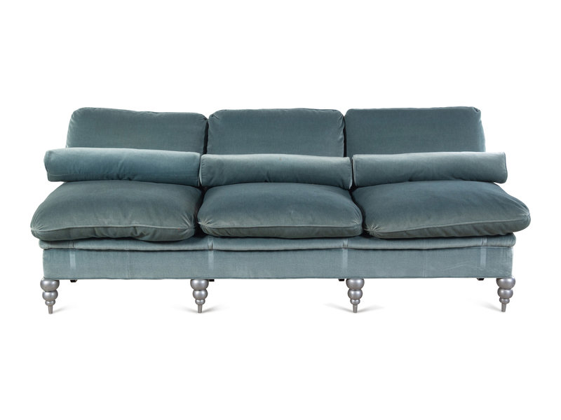 A Custom Velvet-Upholstered Three-Seat Banquette