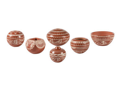 Miniature White-on-Red Pottery Jars