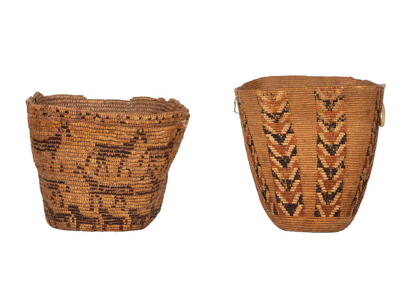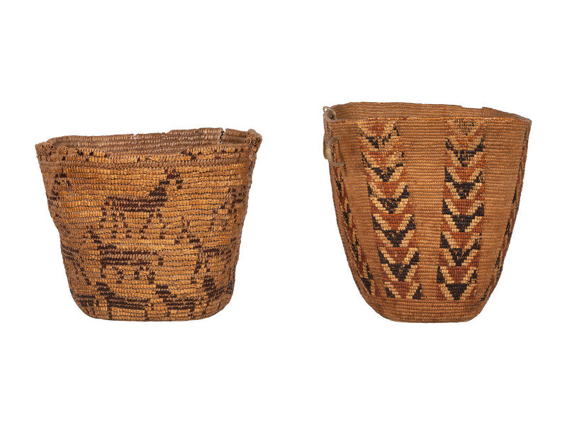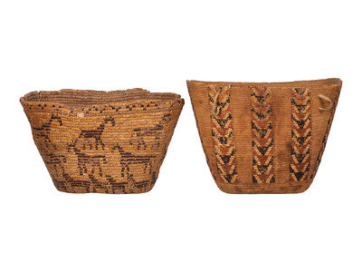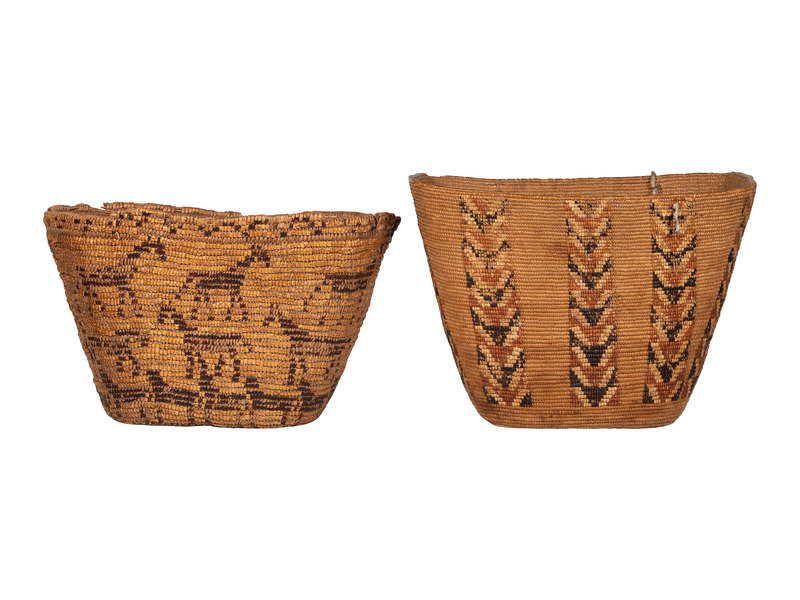 Pair of Salish Imbricated Polychrome Burden Baskets