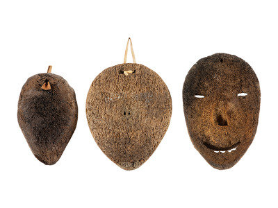 lot of 3, includes two masks with bone inset eyes