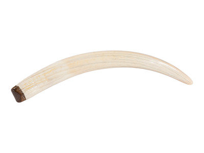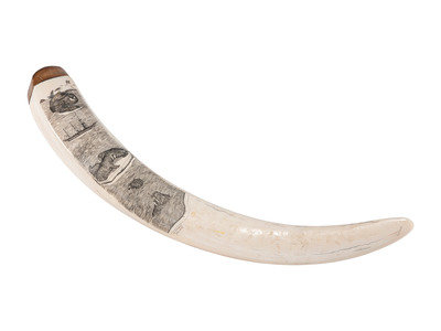 Scrimshawed Walrus Tusk, with Walrus and Ship