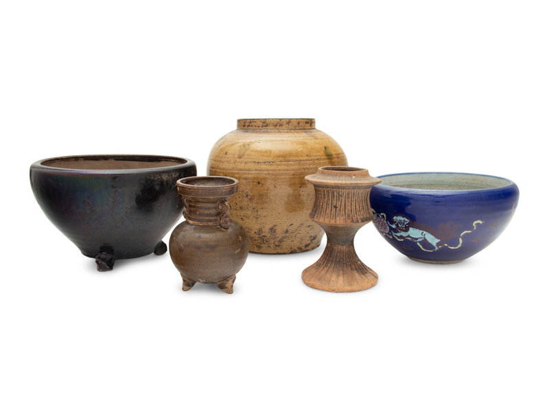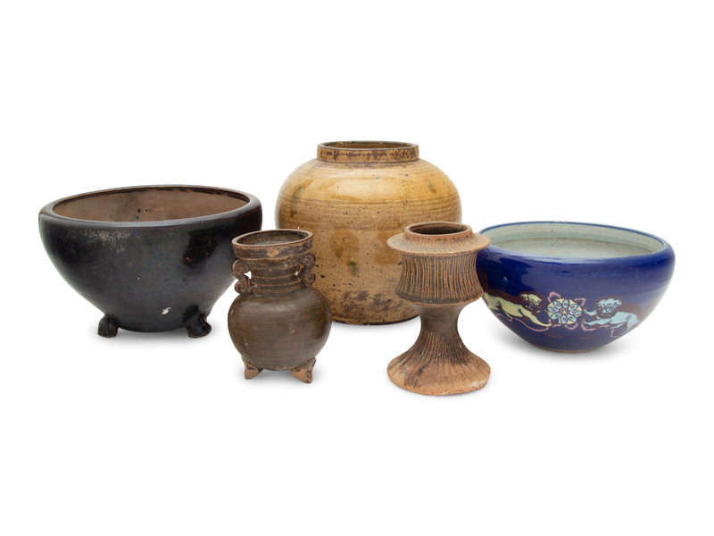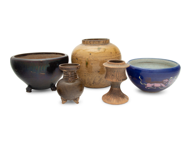 Five Chinese Monochrome Glazed Porcelain and Stoneware Vessels