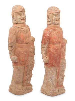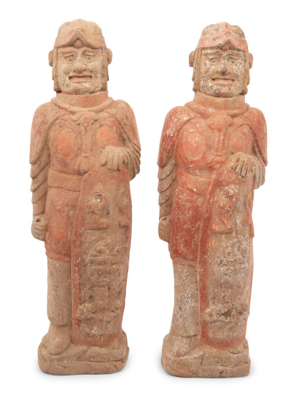 A Pair of Chinese Painted Pottery Figures of Warriors
