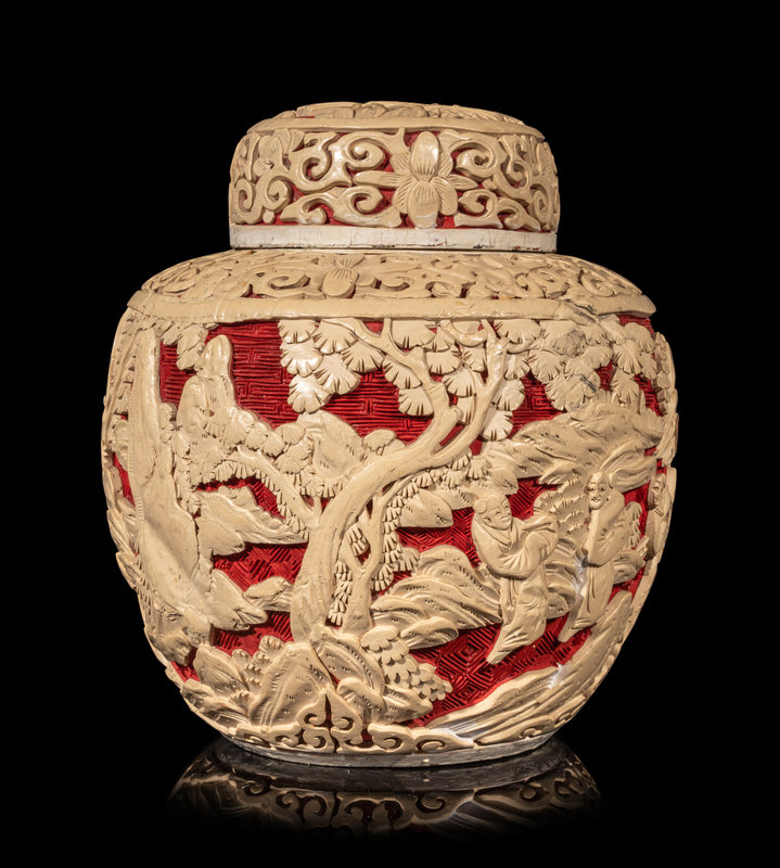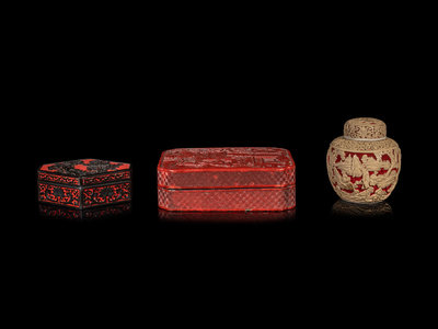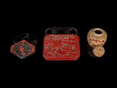 Three Chinese Carved Red Lacquer Articles