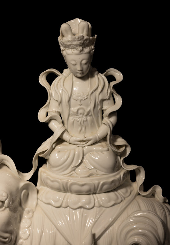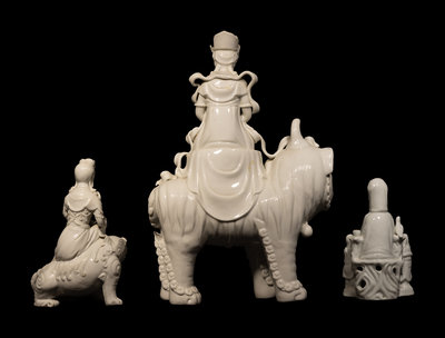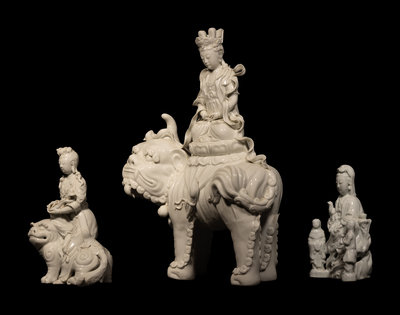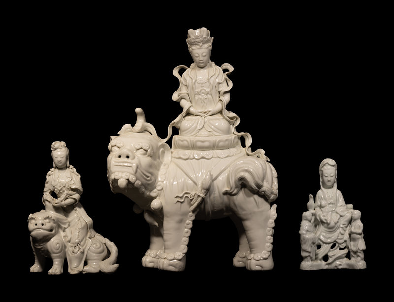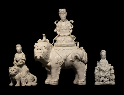 Three Chinese Dehua Blanc-de-Chine Porcelain Figures of Guanyin