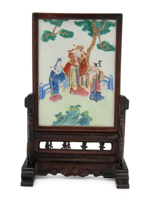 A Chinese Famille Rose Porcelain Inset 'Fu Lu Shou Xi' Table Screen