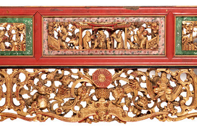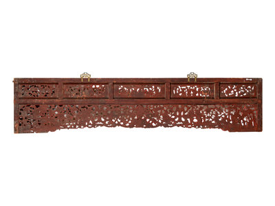 A Large Chinese Gilt and Red Lacquered Wood Panel