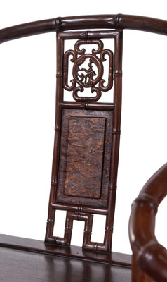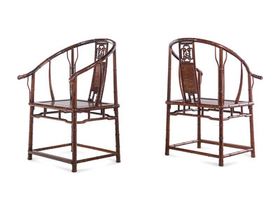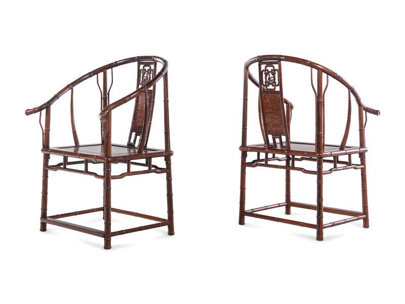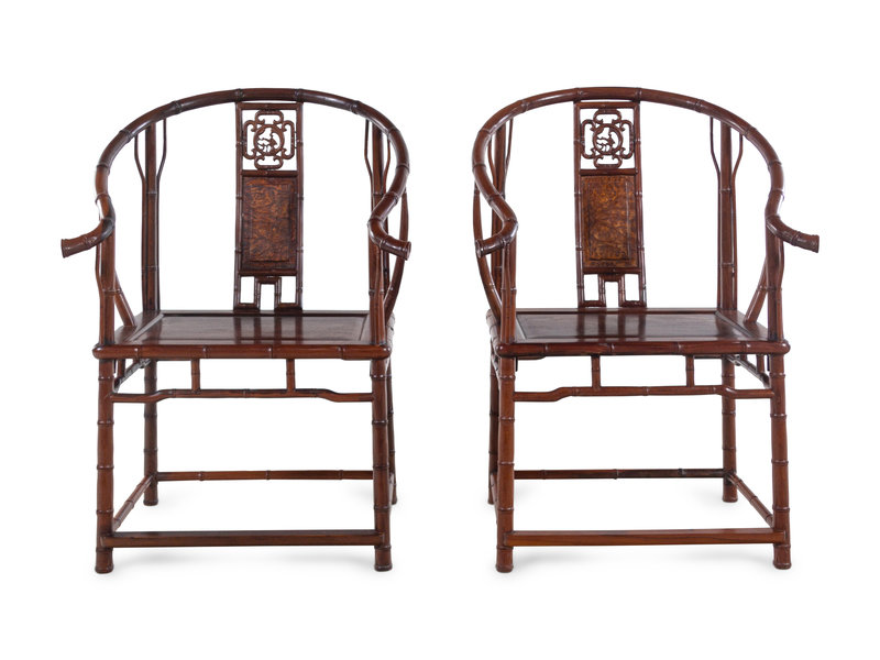 近代 雞翅木仿竹嵌癭木圈椅成對