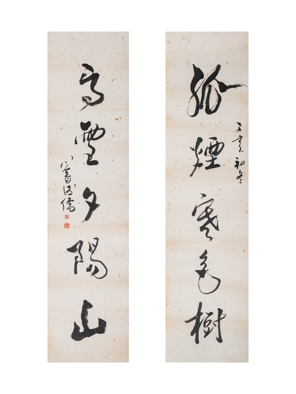 signed and dated year dinghai (1947), with two artist seals, Pu Ru, jiu wang sun.