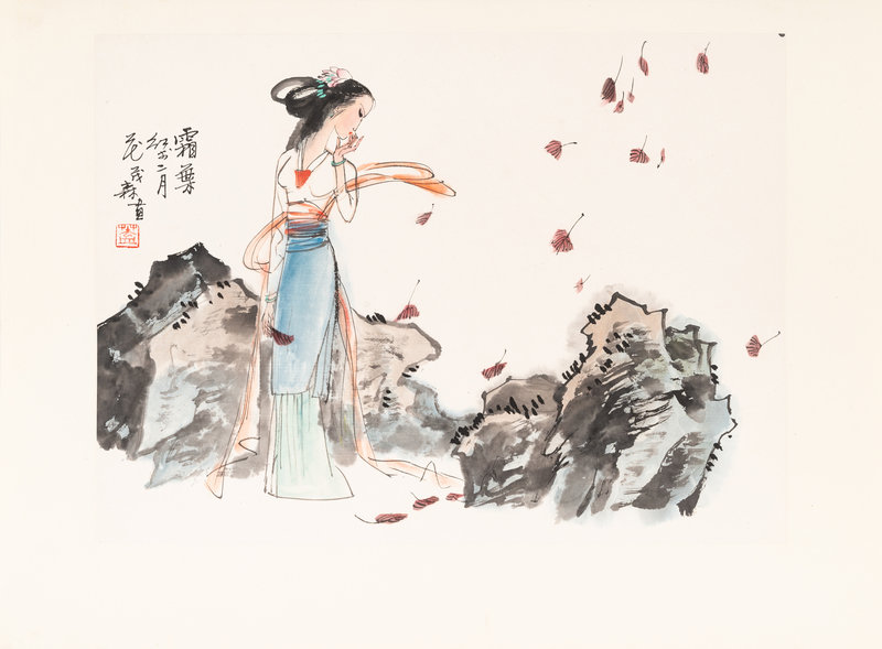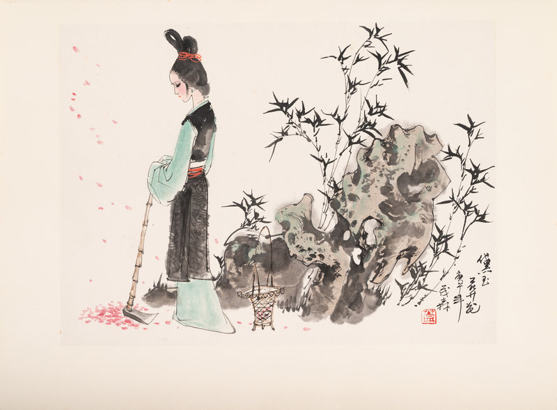 (2)款識:黛玉葬花。庚午年(1990)茂森