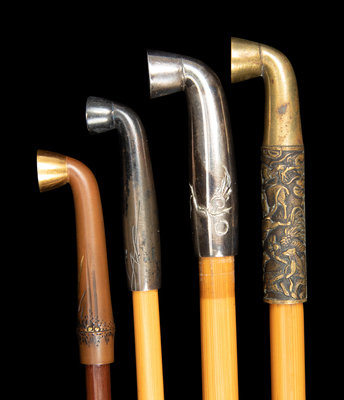 Five Chinese and Japanese Metal Mounted Bamboo Smoking Pipes