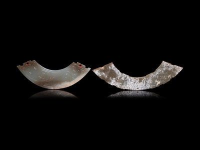 Two Chinese Archaistic Jade Huang Pendants