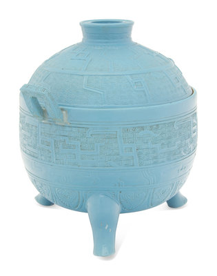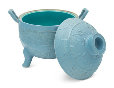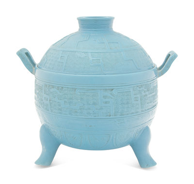 A Chinese Claire-de-Lune Porcelain Archaistic Covered Vessel