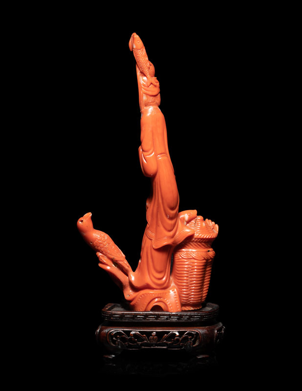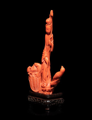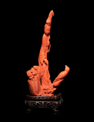 A Chinese Carved Red Coral Figure of A Female Immortal