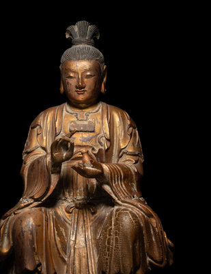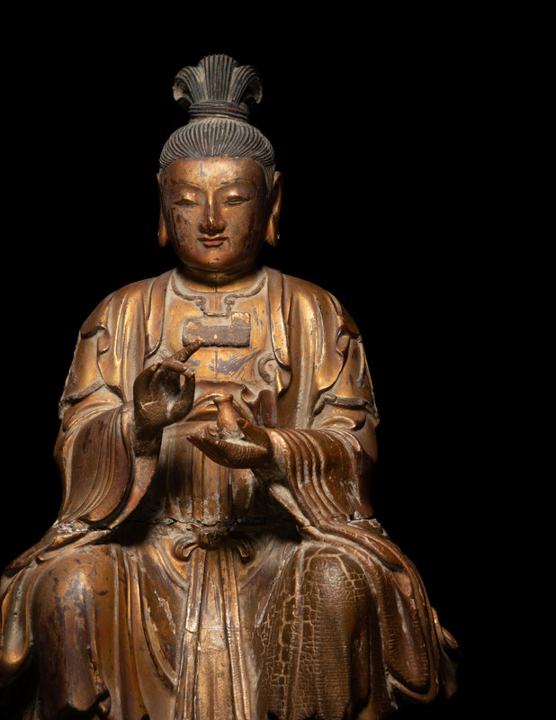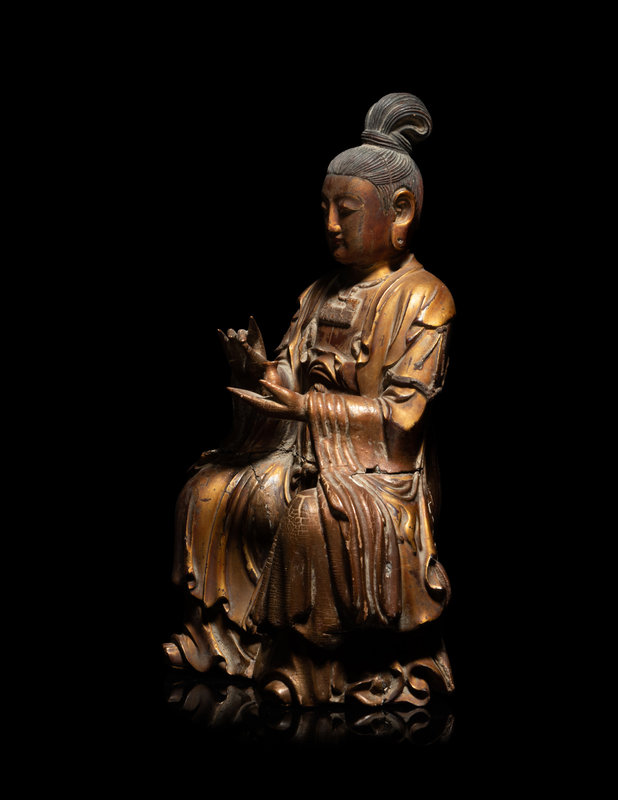 A Chinese Gilt Lacquered Wood Figure of Guanyin
