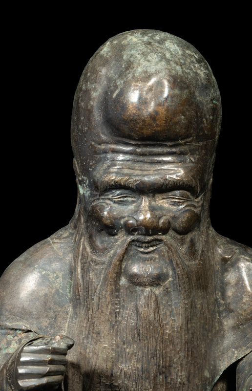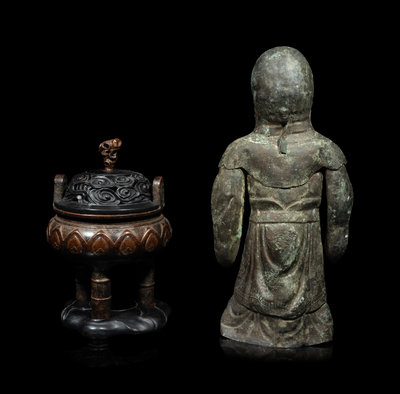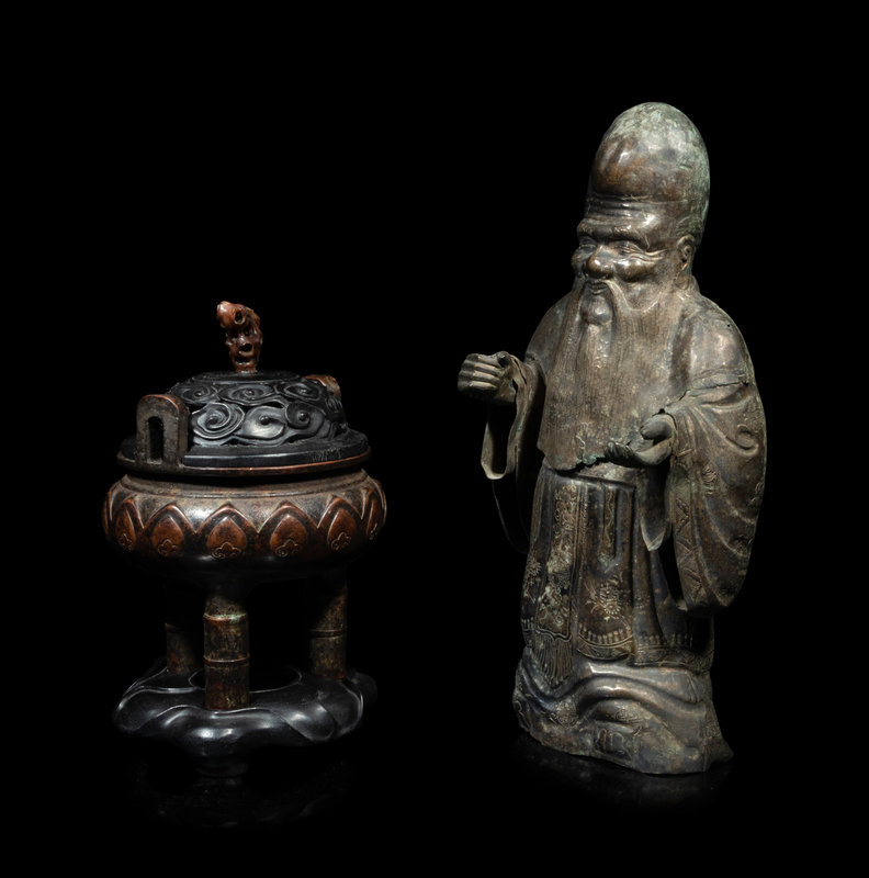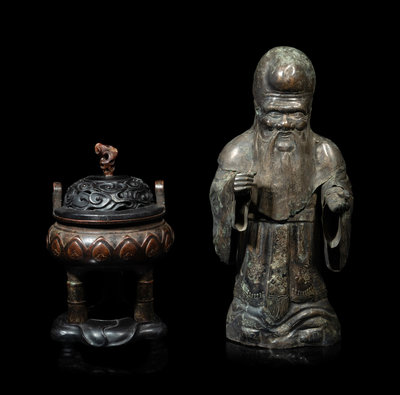 A Chinese Silver Figure of Shoulao and A Chinese Bronze Incense Burner