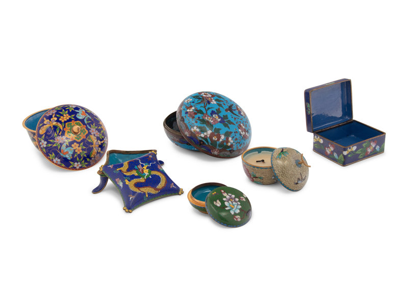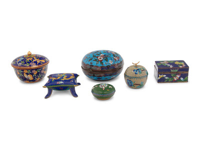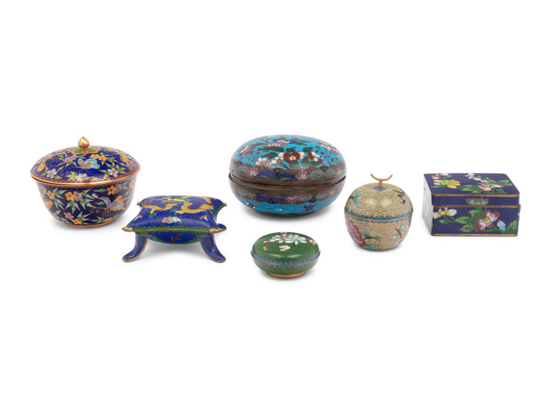 Six Chinese Cloisonné Enamel Covered Boxes