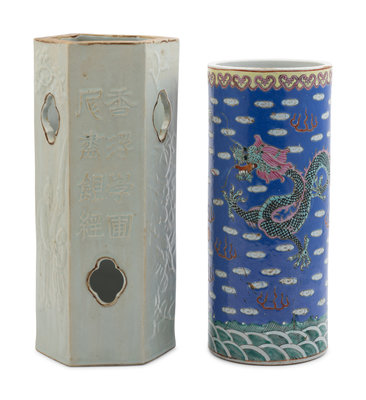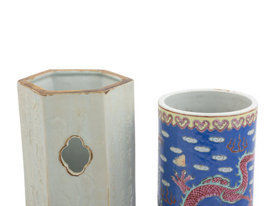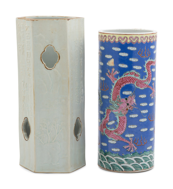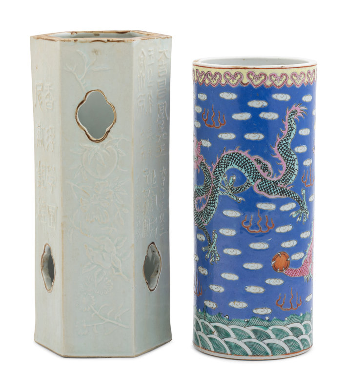 Two Chinese Porcelain Hat Holders