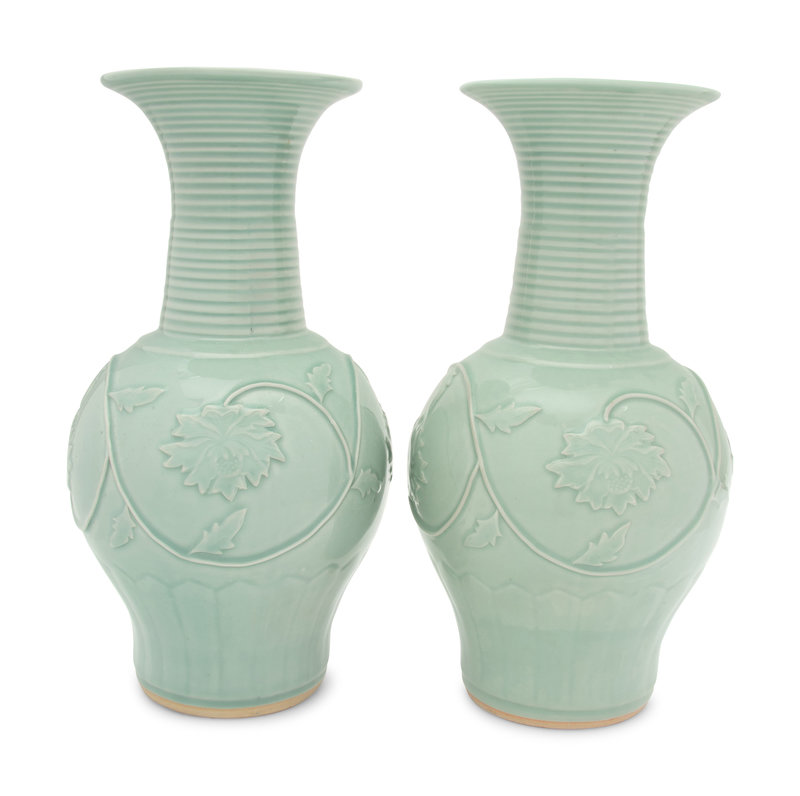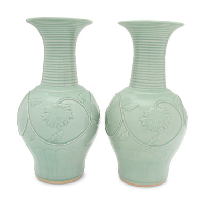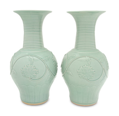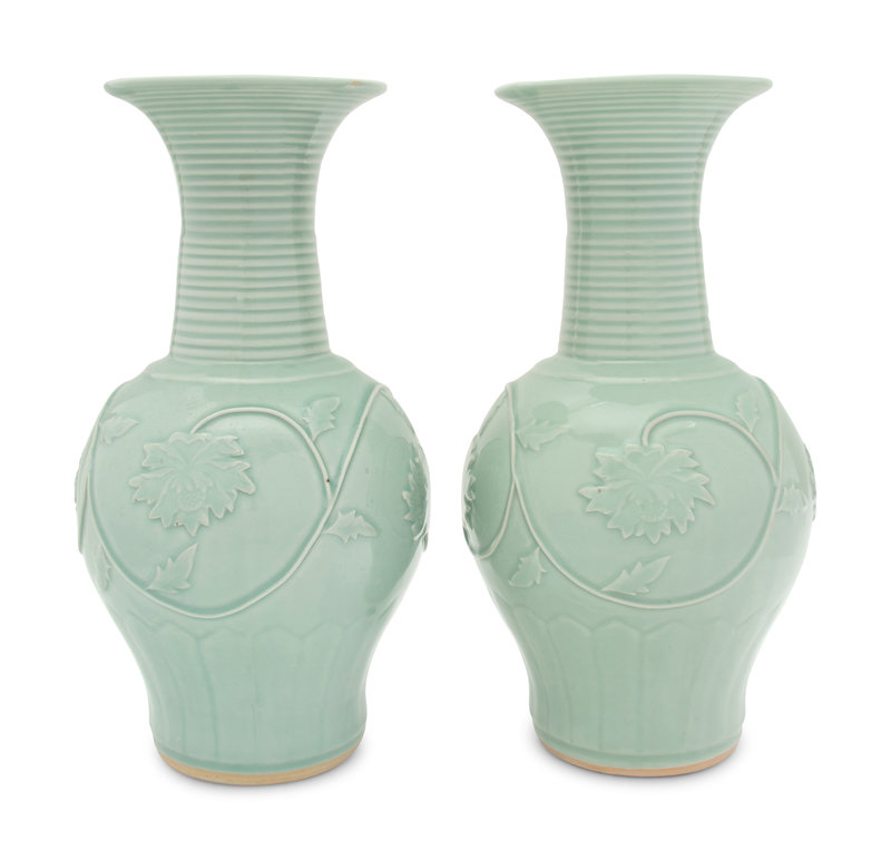 A Pair of Chinese Longquan-Style Celadon Glazed Porcelain Vases