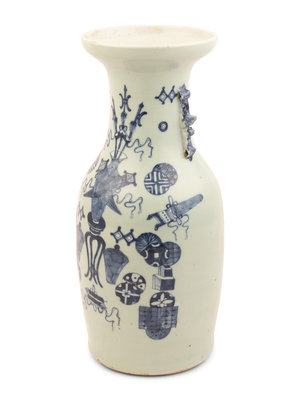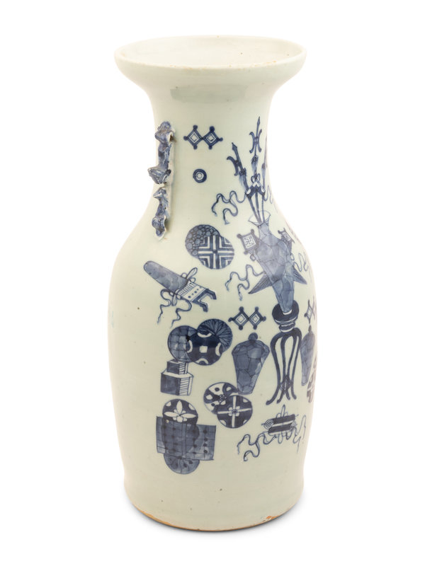 A Chinese Celadon Ground Underglaze Blue Porcelain Vase