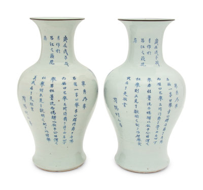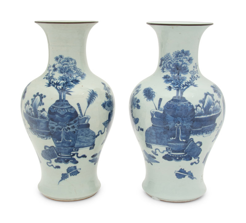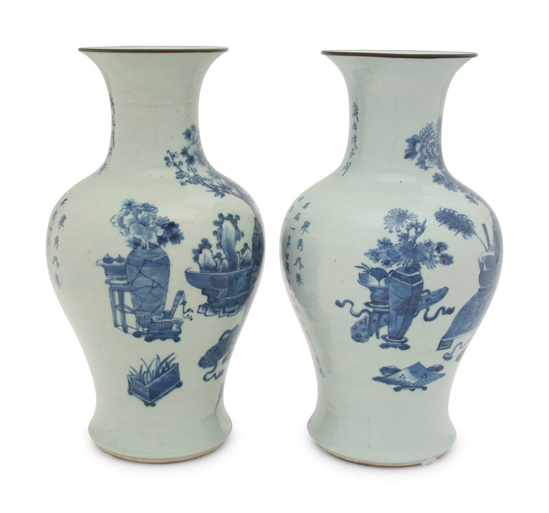 A Pair of Chinese Blue and White Porcelain 'Bogu' Vases