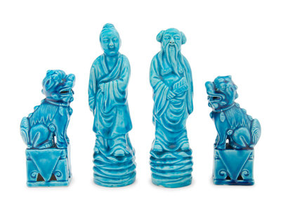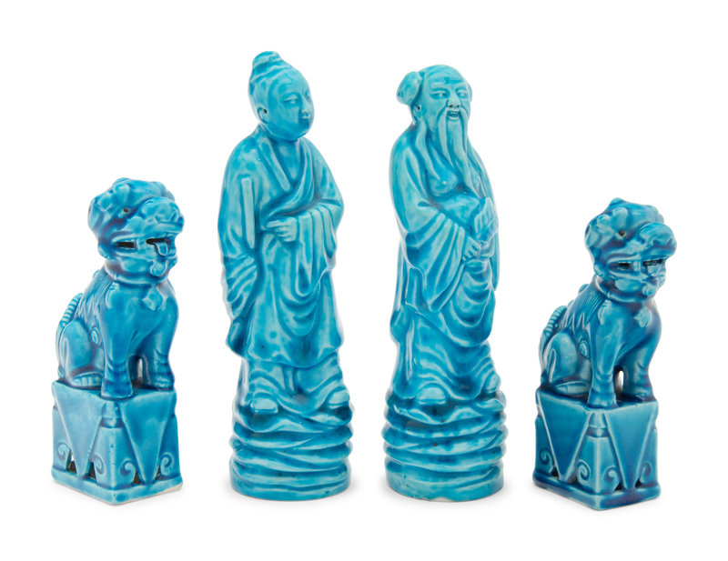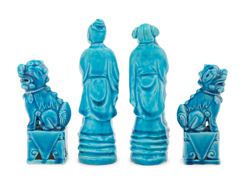 Two Pairs of Chinese Turquoise Glazed Porcelain Figures