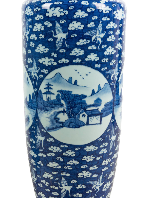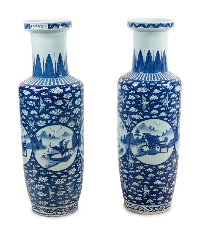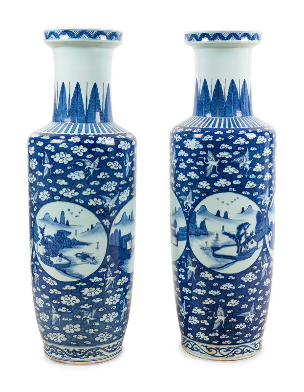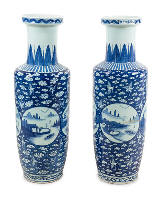 A Pair of Chinese Blue and White Porcelain Rouleau Vases