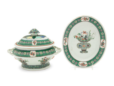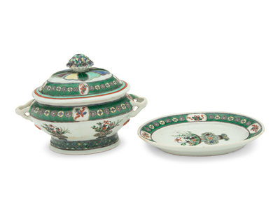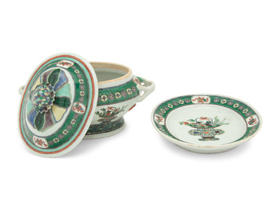 A Chinese Export Famille Verte Porcelain Covered Tureen and Undertray