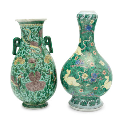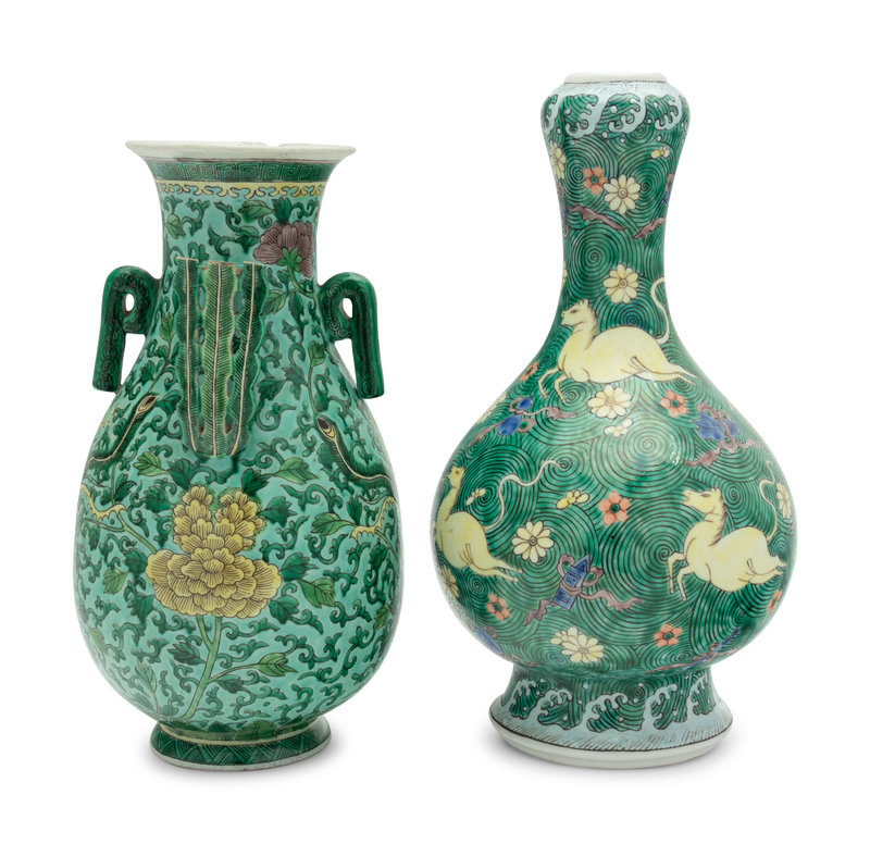 Two Chinese Famille Verte Porcelain Vases