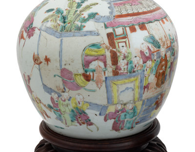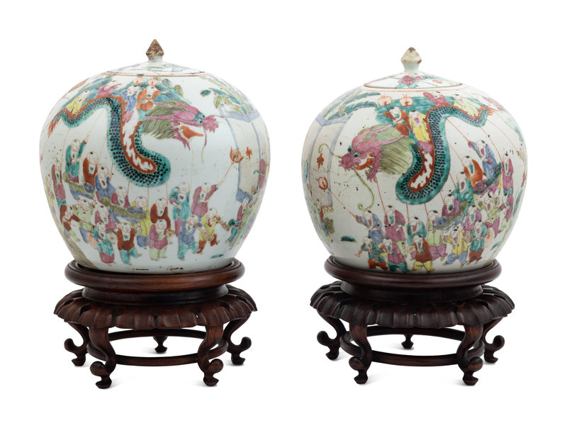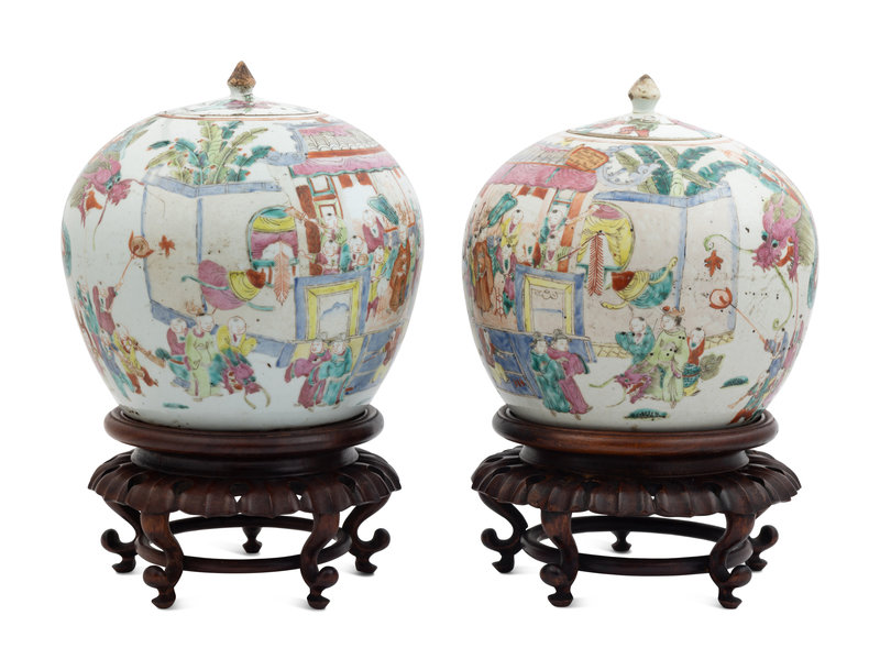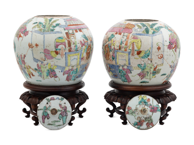 A Pair of Chinese Famille Rose Porcelain Covered Ginger Jars