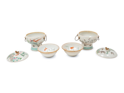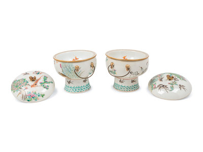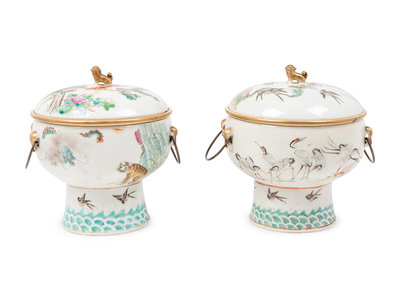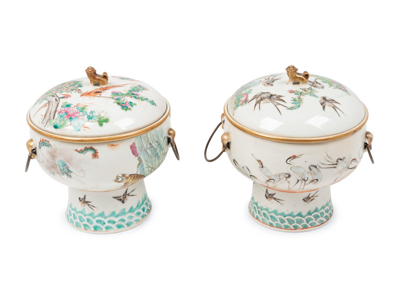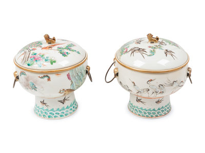 A Pair of Chinese Famille Rose Porcelain Hot Pots