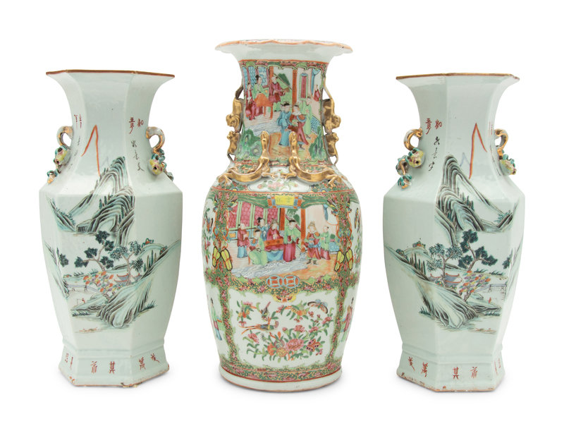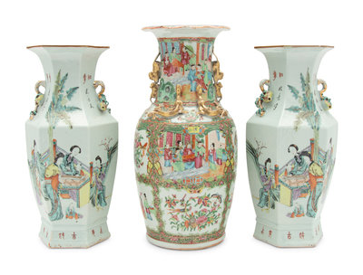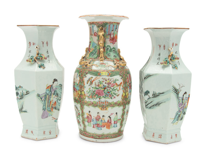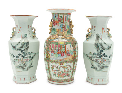 A Pair of Chinese Famille Rose Porcelain Vases and a Chinese Export Rose Medallion Porcelain Vase