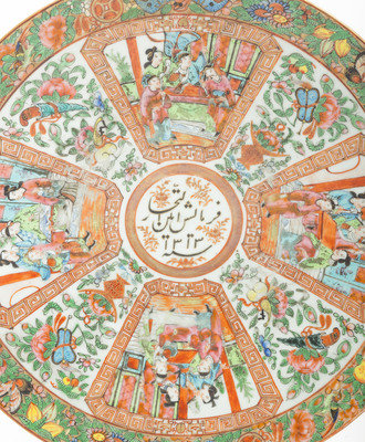 清晚期 外銷波斯語廣彩賞盤及大碗各一