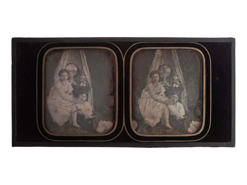 6 3/4 x 3 3/8 in. stereodaguerreotype. (Some brushing/scratching to surface of plate, tarnished edges, some spotting.) Likely French.