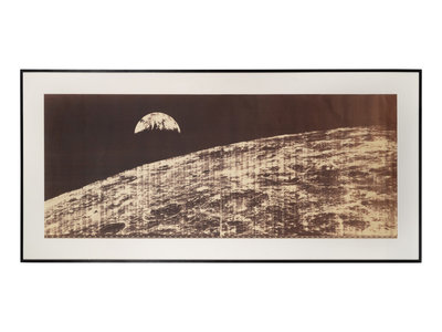 Large photographic print, 35 1/2 x 90 1/2 in. Lunar Orbiter images I-102H-1 & 2, some minor creasing and discoloration, matted and framed (unexamined out of frame). Provenance: Sold Sotheby's New York, 29 November 2018, sale N09897, lot 20.