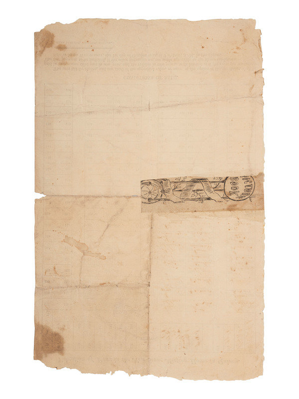 Approx. 8 1/4 x 13 in. partly-printed broadsheet (split and loss with 19th-century repair, a few brown spots, light wear at edges).