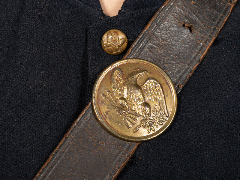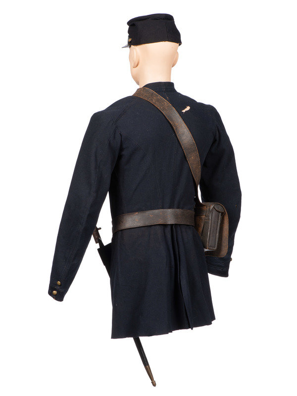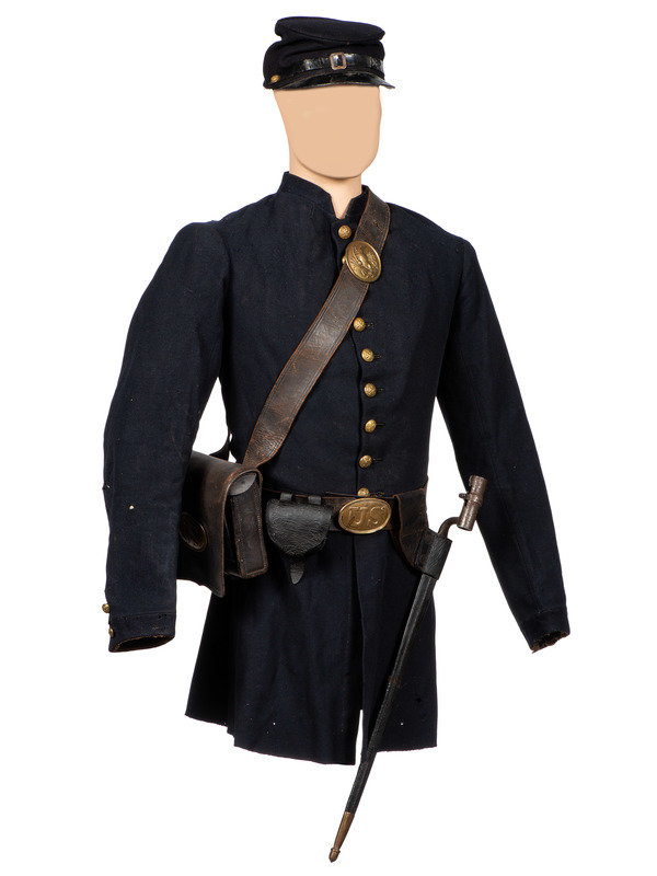 [CIVIL WAR]. A collection of items attributed to Thomas W. Johnson, Co. K, 4th Delaware Infantry, incl. frock coat, cap, belt rig, and cartridge box.