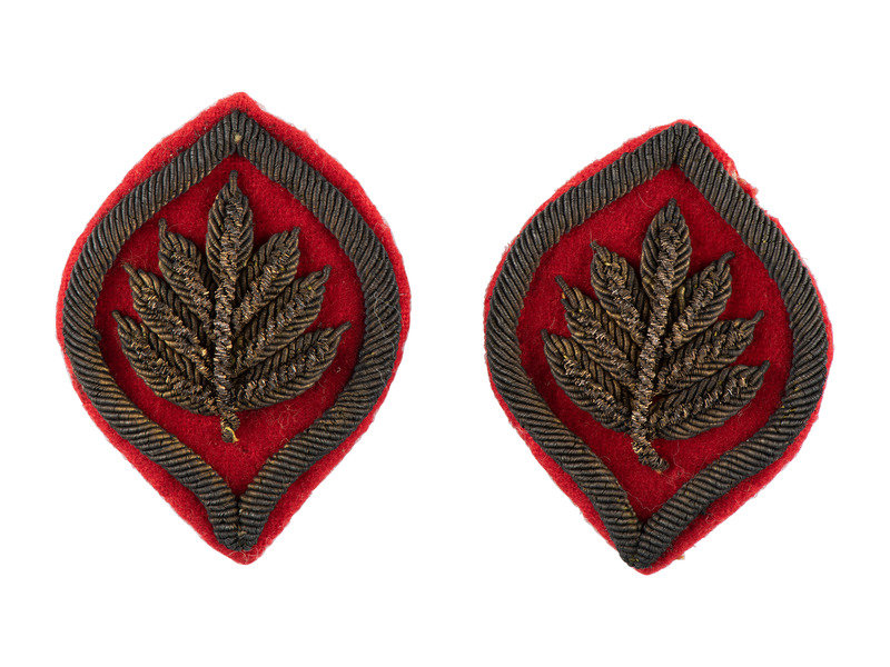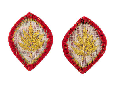 1 1/2 x 2 in. artillery major insignia (some tarnish). Comprised of gold bullion embroidered upon red wool. Provenance: Don Troiani Collection (related by consignor).