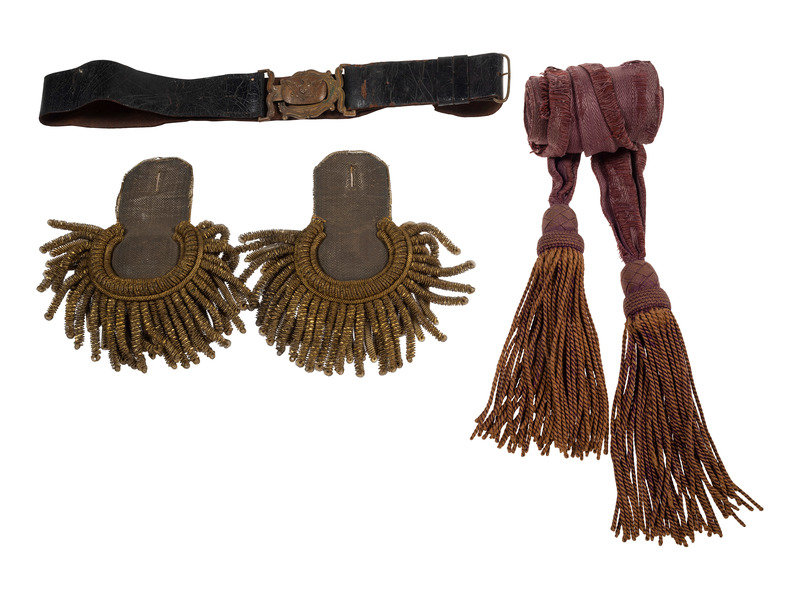 [MILITIA]. A group of pre-Civil War items, including ca 1850s militia belt and belt plate, officer's sash, and epaulettes.