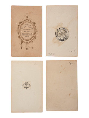 Together, 8 CDVs, 2 1/4 x 3 3/4 in., or smaller, on cardstock mounts. Condition generally good, with some toning, scattered soiling, and some corner and edge wear to mounts.