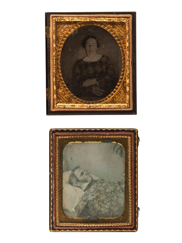 [EARLY PHOTOGRAPHY]. A pair of sixth plate post mortem portraits of adults, comprising: