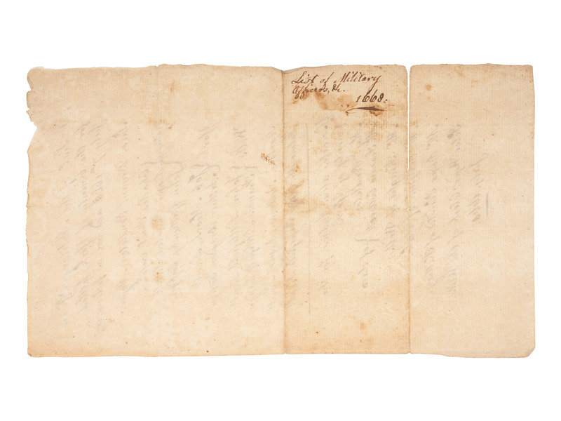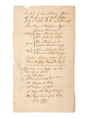 [COLONIAL AMERICA]. Manuscript list of military officers in York, Maine. July 1668.